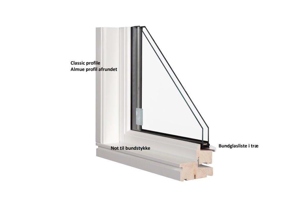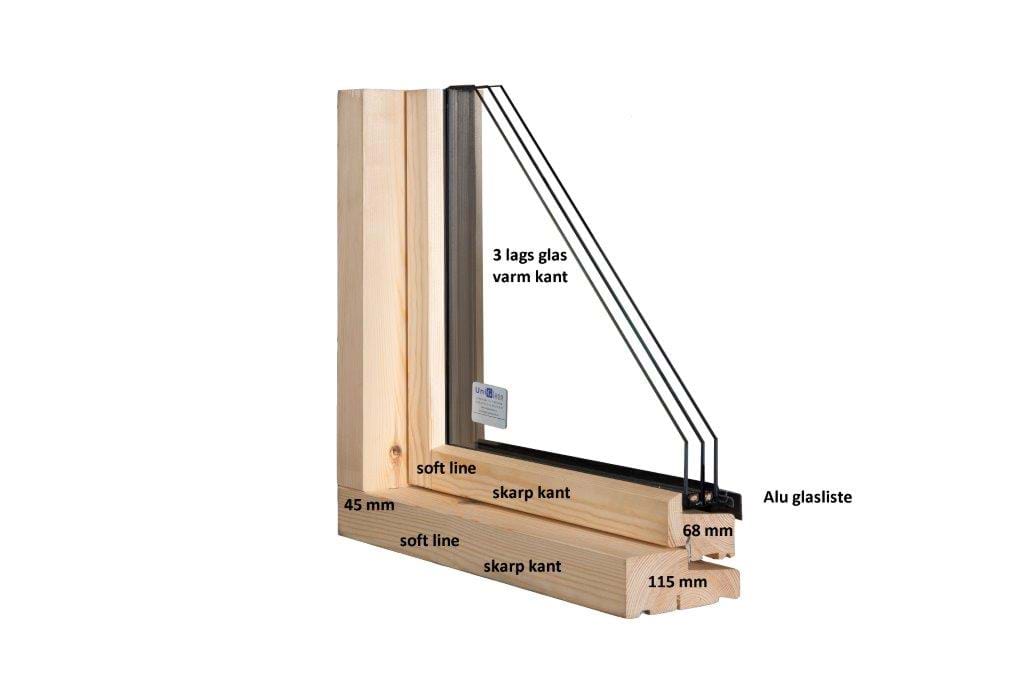 Vi producerer fyrretræ med 2- og 3-lags energiglas med varm kant.